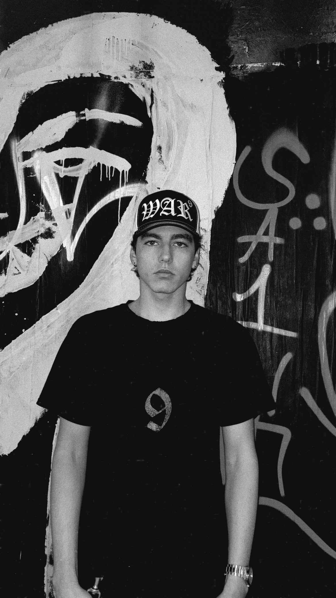 Black WAR9 tee featuring a minimal “9” graphic on the front and bold repeating gothic WAR print on the back. Heavyweight cotton with a clean, street-ready fit. Unisex.